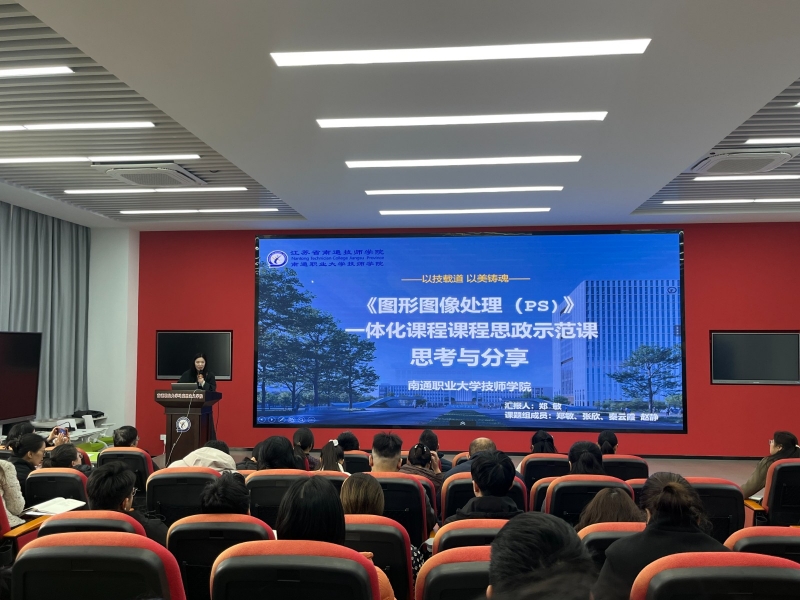 教务处副处长马莉同志就学校课程思政示范课建设情况作专题汇报。她总结了近5年我校课程思政示范课建设成果,并介绍了“第五批”课程思政示范课建设计划和要求,要求课程思政示范课建设要突出思政主线、深化校企协同、争创样板课程。随后来自人工智能与电子信息学院的汪凌老师分享了《UI设计》课程的建设经验,课程梳理出来的“用技术解决社会问题,让创新充满善意”的课程思政主线给现场老师留下深刻印象。